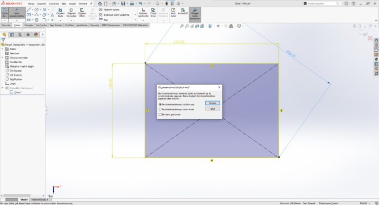 Vurgulanan ölçümlendirme, çizimi aşırı tanımlı veya çözümlenemez yapmış. Aşırı tanımlayan ölçümlendirmeler Çizim seçeneğini bağımlılık durumu ayarlamayı hatırlat olarak ayarladıysanız…