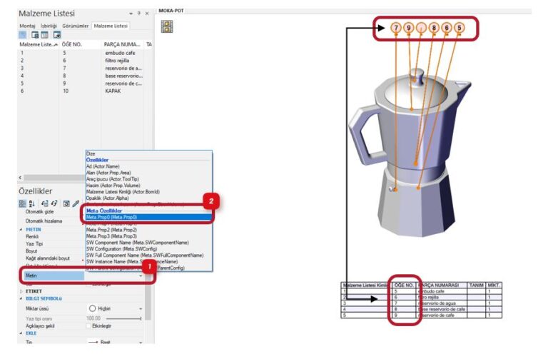 SOLIDWORKS Composer bilgileri, varsayılan olarak, alınan meta özelliklerdeki “Öğe Numarası” yerine SOLIDWORKS Composer “Özellikler” öğesinde yer alan “Malzeme Listesi Kimliği”…