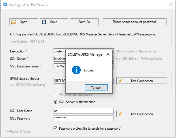 SOLIDWORKS Manage Yapılandırma Dosyası Yardımcı Programı, SolidNetWork License Manager bağlantısını test etmek ve SOLIDWORKS Manage Yönetici Parolasını sıfırlamak için kullanılabilir.…