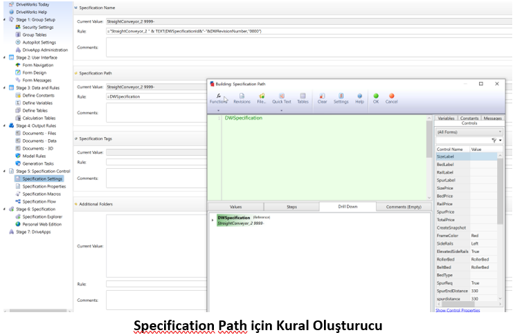 DriveWorks Pro Spesifikasyon Kontrolleri
