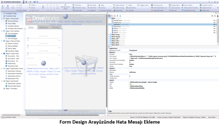 DriveWorks Projelerine Hata Mesajları Ekleme