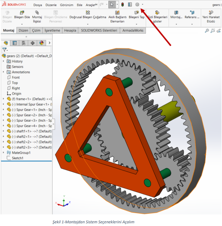SOLIDWORKS’de montaj datasında montaj ilişkileriyle kopyalama yapabilmek mümkündür. İlk olarak komutu kullanacağımız montaj datasını açıyoruz. Daha sonra “Montaj” sekmesindeki “Bileşen…