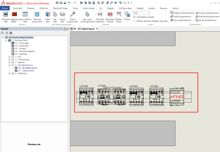 SOLIDWORKS Electrical’da katmanlar, projedeki çizim öğelerini organize etmek için kullanılır. Her katman; belirli bir renk, çizgi tipi, çizgi kalınlığı gibi…