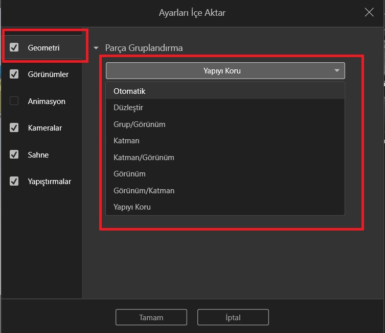 Önceden hazırladığınız bir CAD datanızı, Visualize ortamına aktarırken sizi Ayarları İçe Aktar menüsü karşılayacaktır. Bu menü içerisinde 6 farklı sekme…