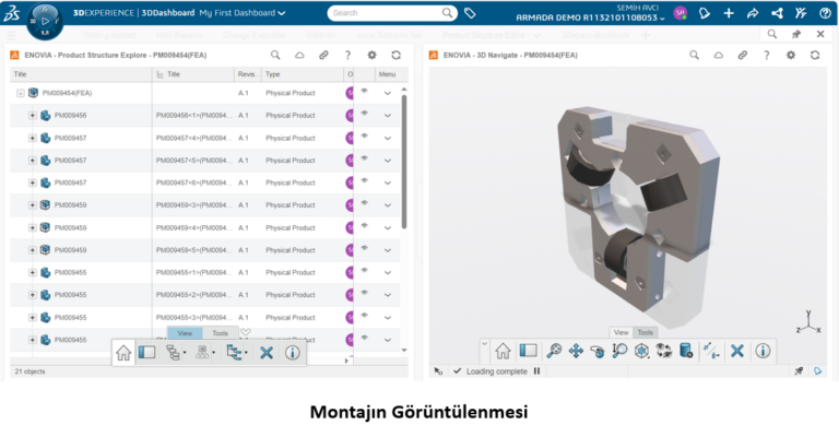 3DEXPERIENCE’da montaj görüntüleme ve liste halinde montajın görünmesi parçaların içinde arama ve görselleştirme durumları için çok kullanışlı bir yapıya sahip…