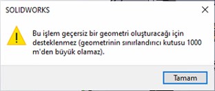 SOLIDWORKS Bu İşlem Geçersiz Bir Geometri Oluşturacağı İçin Desteklenemez (Geometrinin Sınırlandırıcı Kutusu 1000m’den Büyük Olamaz)