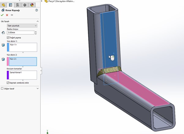 SOLIDWORKS için yaptığınız bir montaj dosyasını ya da parça için kaynak attığımız zaman “step” olarak kaydettiğimiz de bu kaynak izleri…