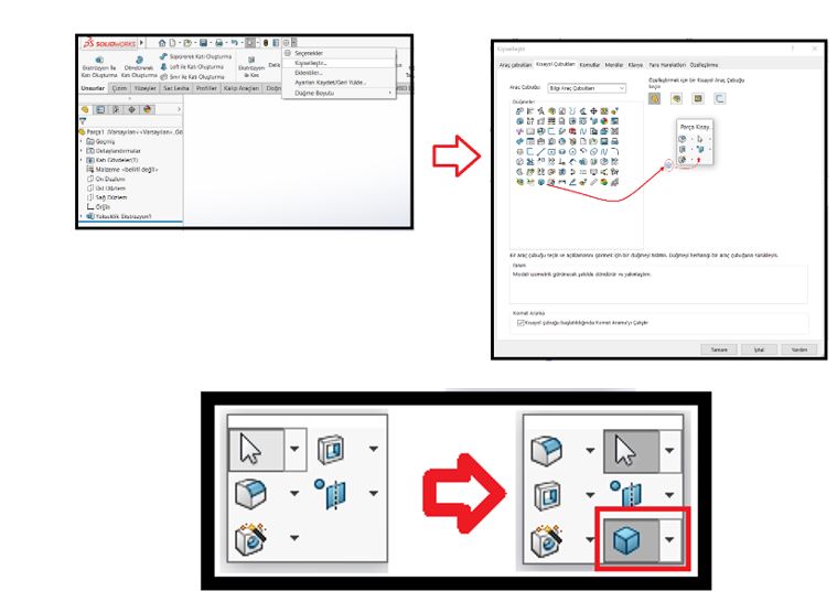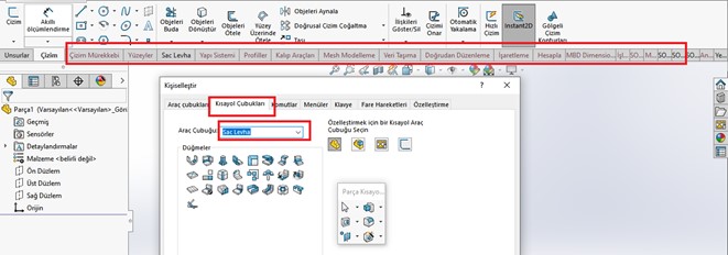 SOLISWORKS’te “S” tuşuna bastığınızda önünüze çıkan kısa yol menüsünü özelleştirebilirsiniz. Öncelikle “Kişiselleştir>Kısayol Çubukları” yolunu izleyin. Ardından açılan pencerede özelleştirmek istediğiniz…