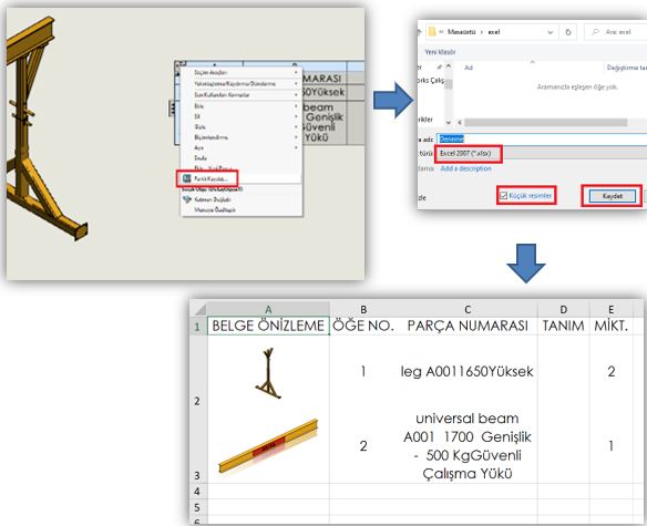 SOLIDWORKS Excel’e Küçük Resimli Malzeme Listesi Aktarma
