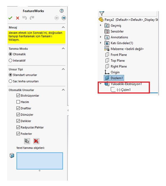 SOLIDWORKS FEATUREWORKS ile Unsur Tanımlama